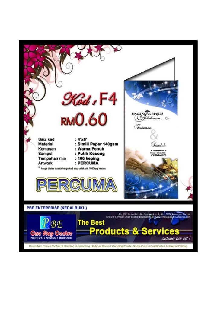 - Alamat: Kedai buku terletak di No. 107, Jalan Mutiara Biru, Taman Mutiara, 09700 Karangan, Kedah, Malaysia.